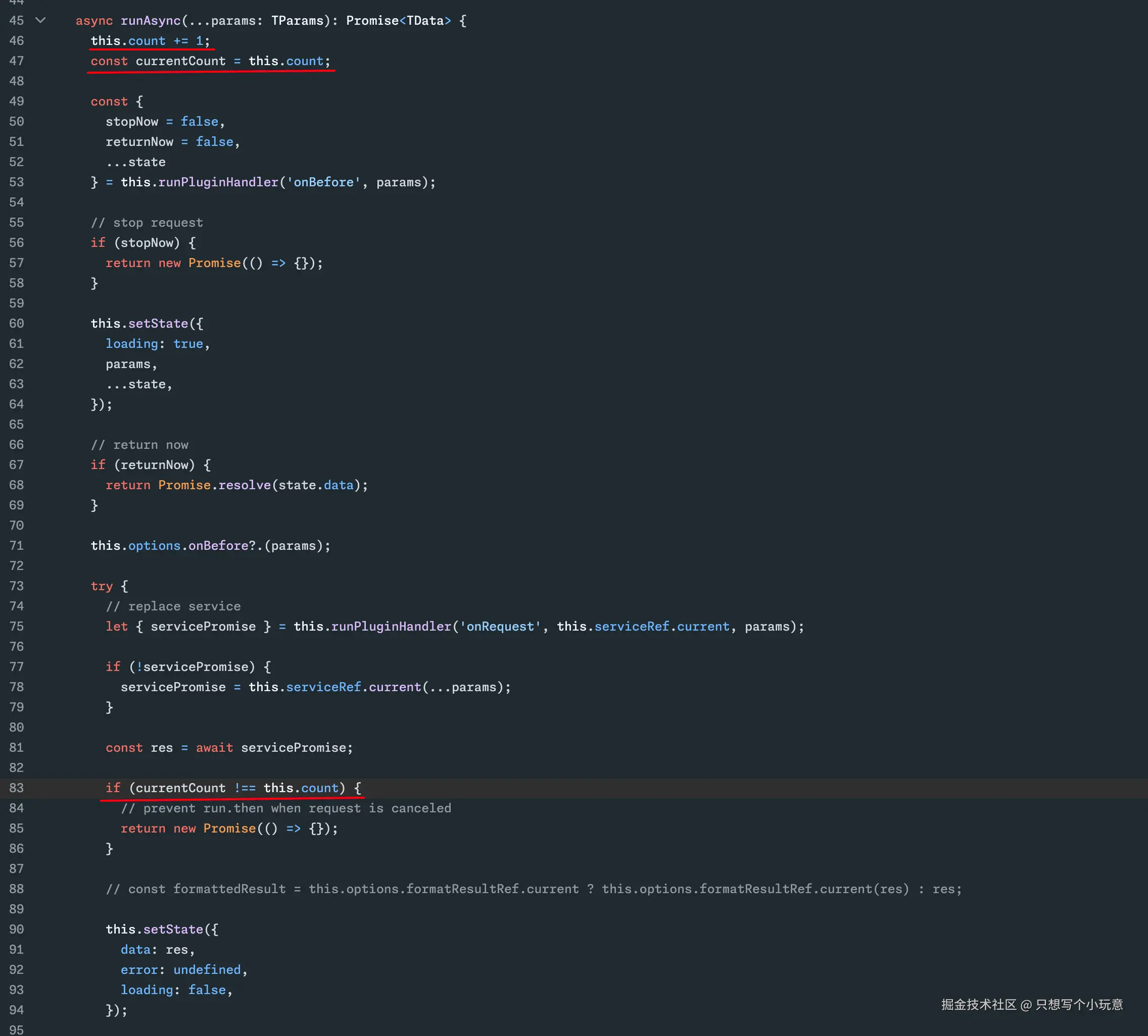 useRequest 内部帮我们处理了竞态问题,它采用的思路是丢弃之前的请求,只处理最后一次请求的响应:github.com/alibaba/hoo…