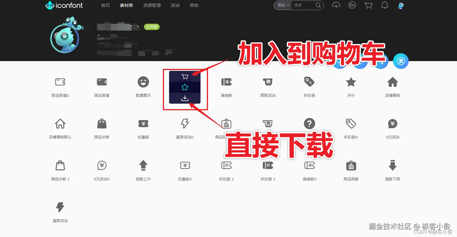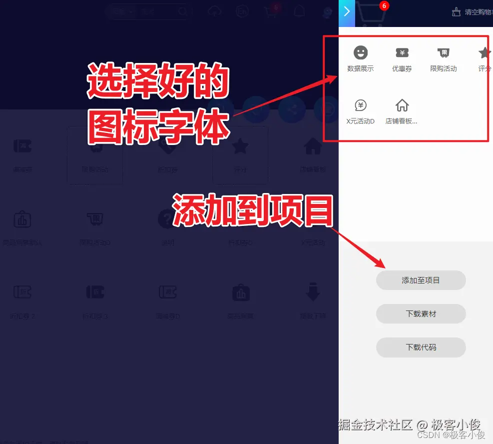 所以我们先要把想要用的图标添加到购物车