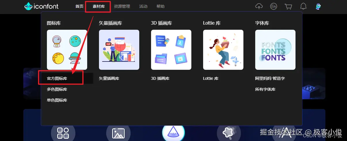 登录之后,我们通常在菜单栏中选择素材库里面的图标库 根据需求自己选择!
