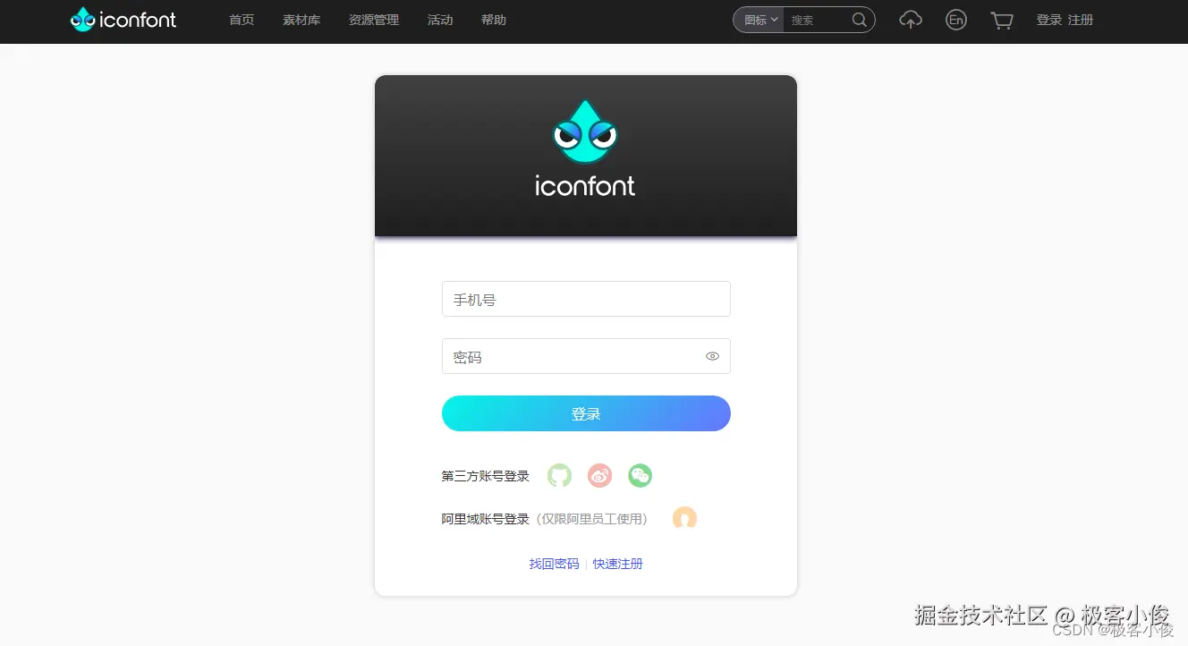 但是除了它还有一款非常好用并且也是免费的图标字体库也是非常不错,并且我自己开发时也是经常在用,那就是iconfont 阿里巴巴矢量图标库 毕竟也要支持国产嘛,你说对不对!