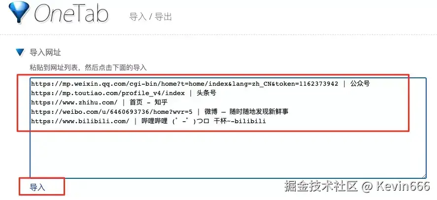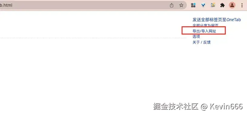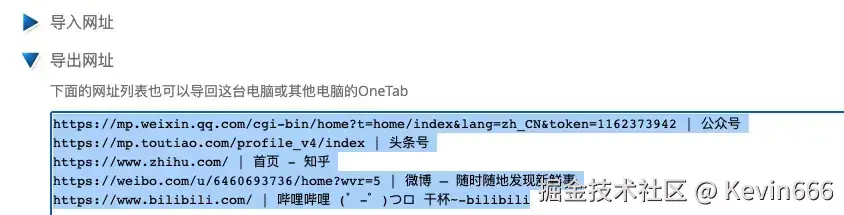 点击onetab页面的“导出/导入网址”,