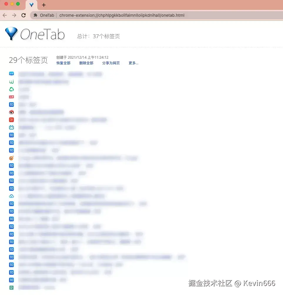 当我点击这个插件的时候,所有的标签页都被整理到了这样一个页面。浏览器标签一下子变得非常清爽。