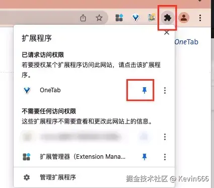 因为onetab是我们的常用插件,所以我们安装好之后,一定要将onetab插件放到常用标签里面。