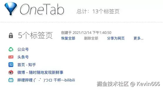 我白天上班,晚上一部分时间用来做自媒体,要写稿,又要做视频,还要发布。所以onetab成为了我的实用工具之一。