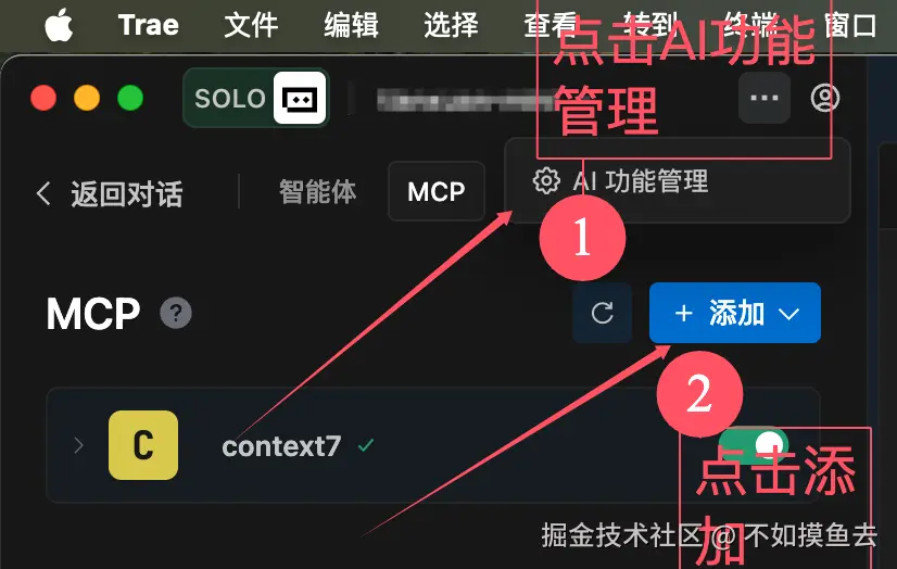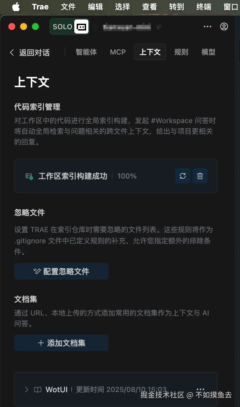 我们首先对 Trae 进行一些配置:包括figma mcp、文档集、规则等,使 Trae 的开发思路更加符合我们的要求。