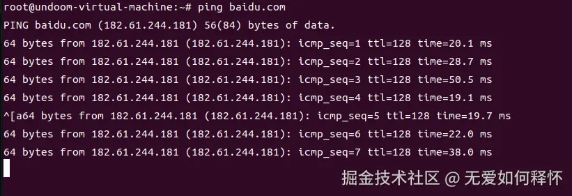 我们这里输入命令是没有问题的,所以我们这个虚拟机肯定是可以进行互联网的访问操作的