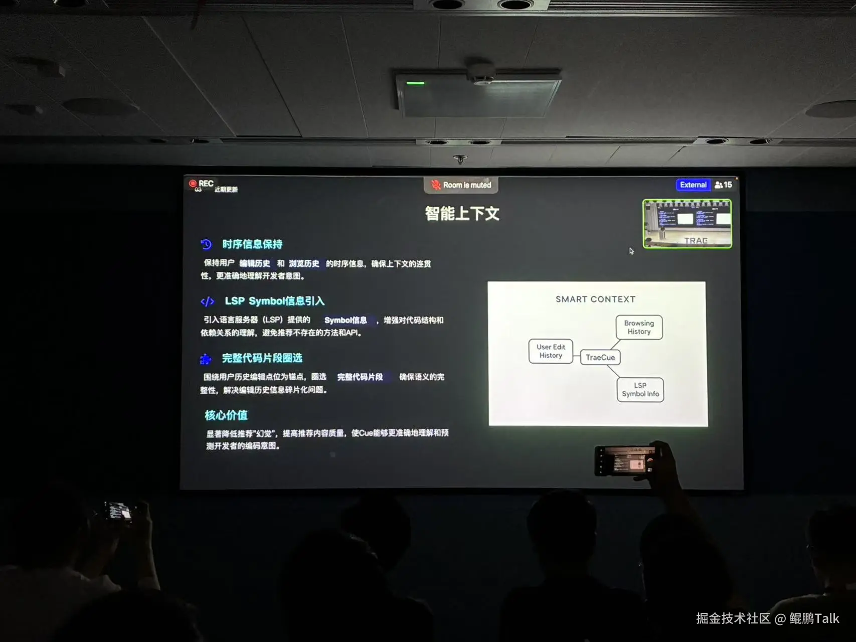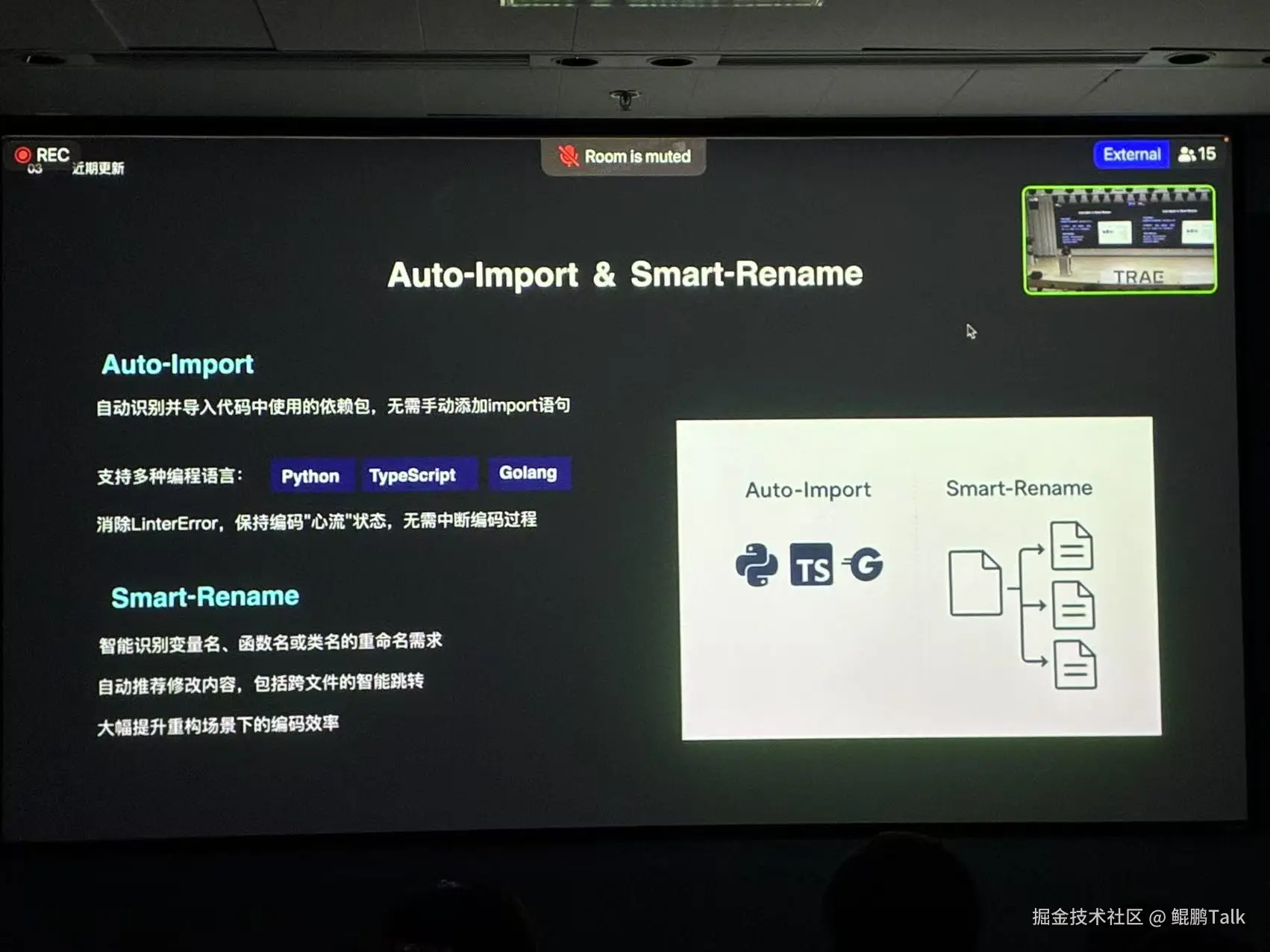 接着是 TRAE Cue 功能的技术负责人江波老师。他将我们带入了 TRAE 的“大脑”——智能编程工具 Cue(Context Understanding Engine)的深层世界。他详细介绍了 Cue 的核心功能,如代码补全、多点编辑和智能导入。这些功能听起来简单,但在实际开发中,它们能极大地提升我们的编码效率和准确性,简直是程序员的“贴心小棉袄”!