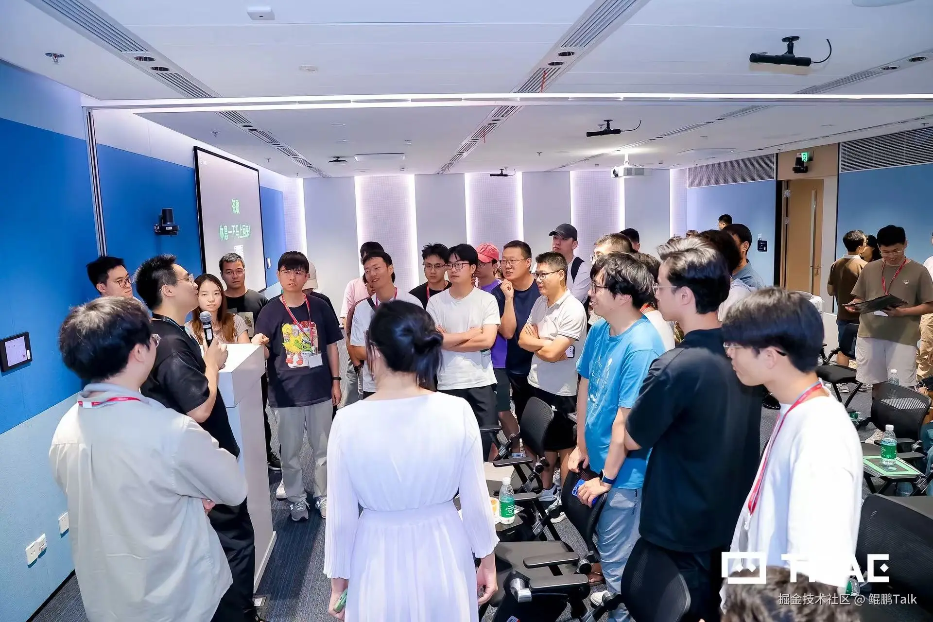 一踏入字节工区,那种独特的科技感和活力扑面而来。宽敞明亮的活动大厅里,已经聚集了近四百位来自五湖四海的开发者。空气中弥漫着一种独特的、属于技术人的兴奋与专注。我看到有人背包里鼓鼓囊囊,笔记本、各种接口线、甚至还有人带着路上写到一半的代码,那份对技术的热爱简直要溢出来了。入口处,老朋友们一见面就热情地拥抱、击掌,新面孔们则带着几分腼腆又充满期待地交换着微信,轻声讨论着各自的项目和想法,仿佛下一秒就能碰撞出火花。这种生动、真实、充满活力的技术社区氛围,瞬间就让我感受到了技术人的温度和凝聚力,也让我对今天的活动充满了更高的期待!