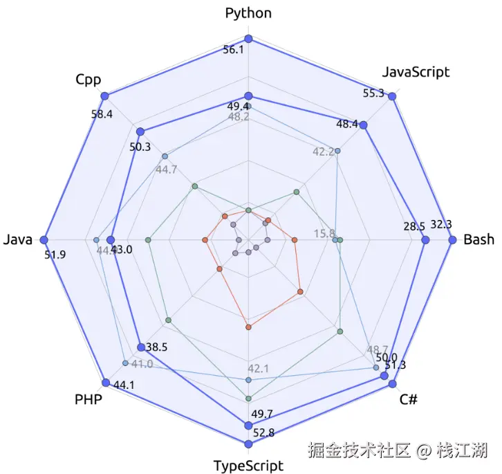 DeepSeek 在多种编程语言和各种基准测试的开源代码模型中实现了最先进的性能。