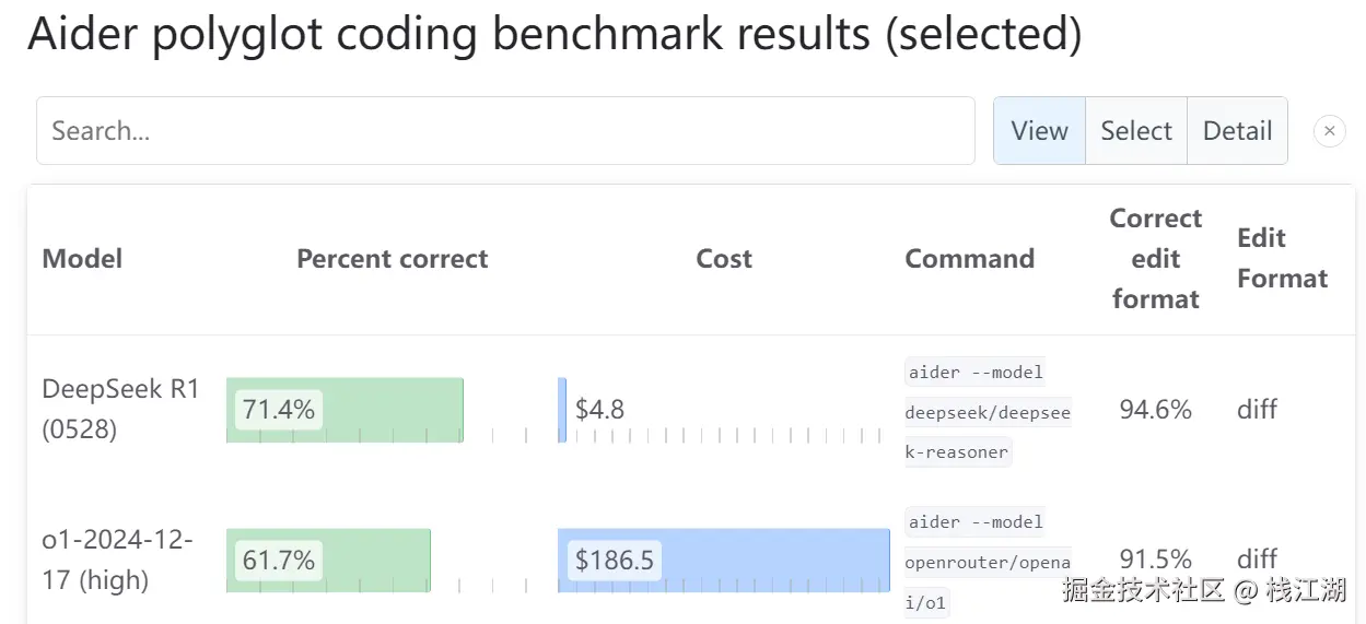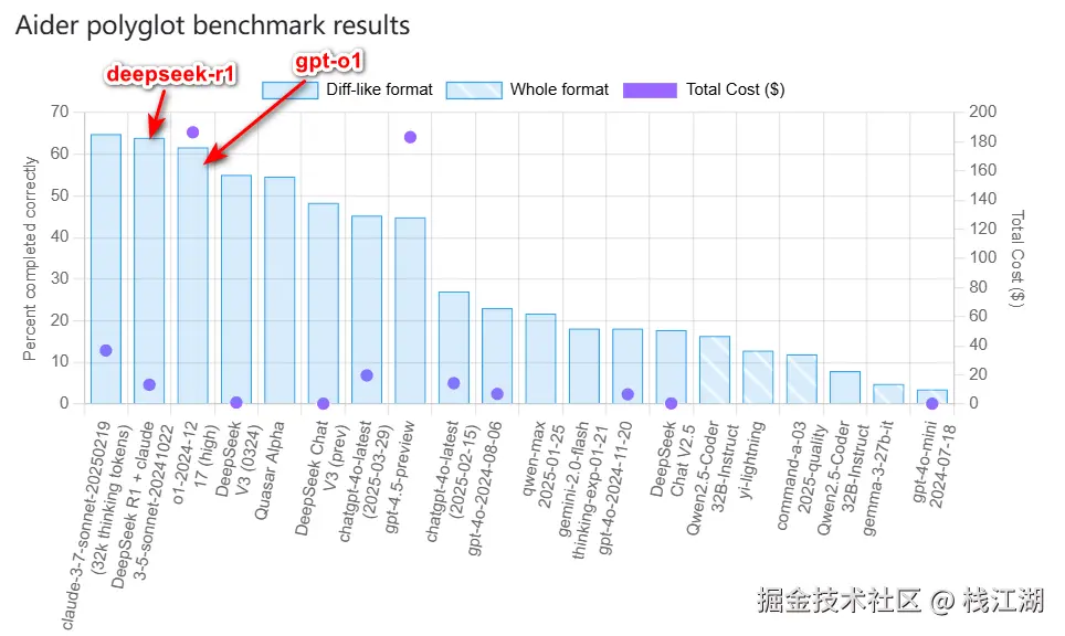 下面这个是来自Aider的一个排行榜
