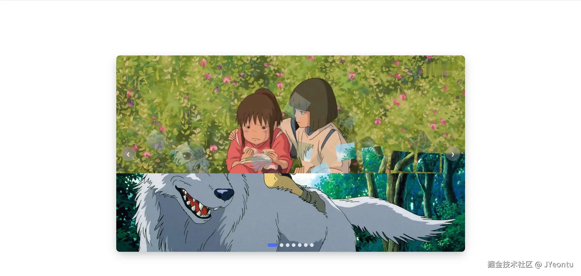 这种碎片化的图片过渡效果大家应该都见过吧,不过主要还是在视频剪辑效果中比较多见,今天我们一起来看看怎么在前端页面中实现一下这个图片碎片化的过渡效果,并用这个过渡动画做一个轮播图。