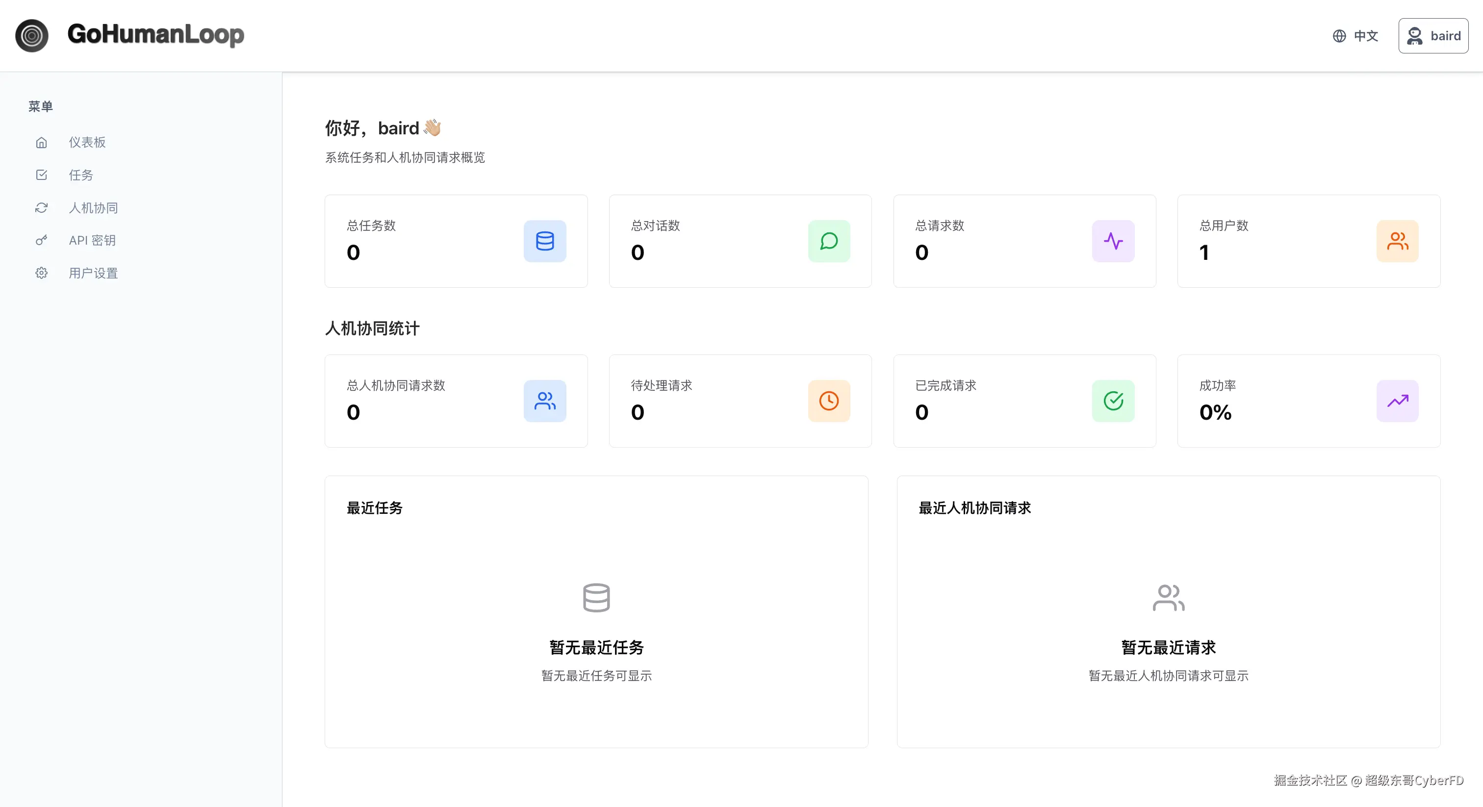 GoHumanLoopHub 是作为 GoHumanLoop SDK 的官方服务平台,专门用于处理人机协同的请求,提供了用户管理、API 密钥管理、任务数据、协同请求管理等功能。
