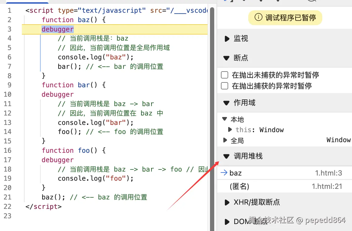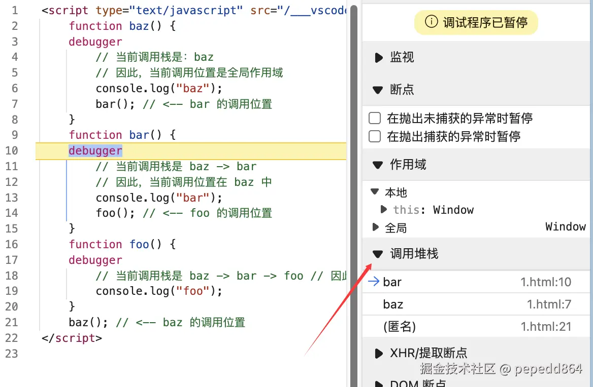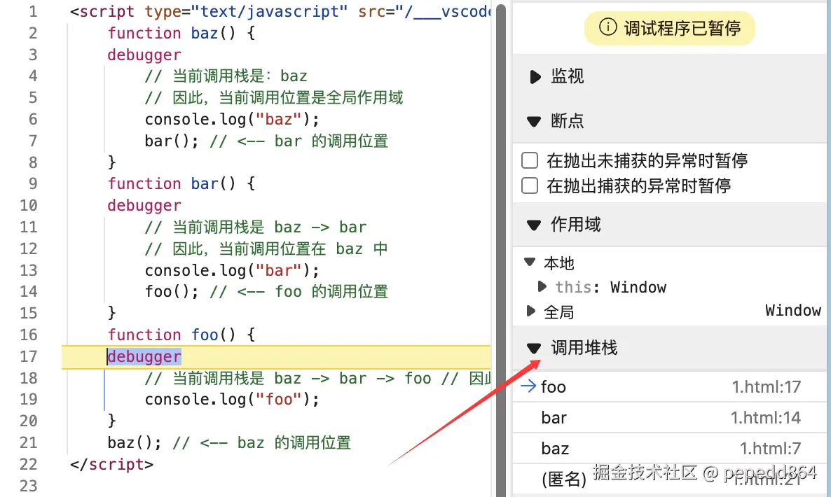 foo(); // <-- foo 的调用位置