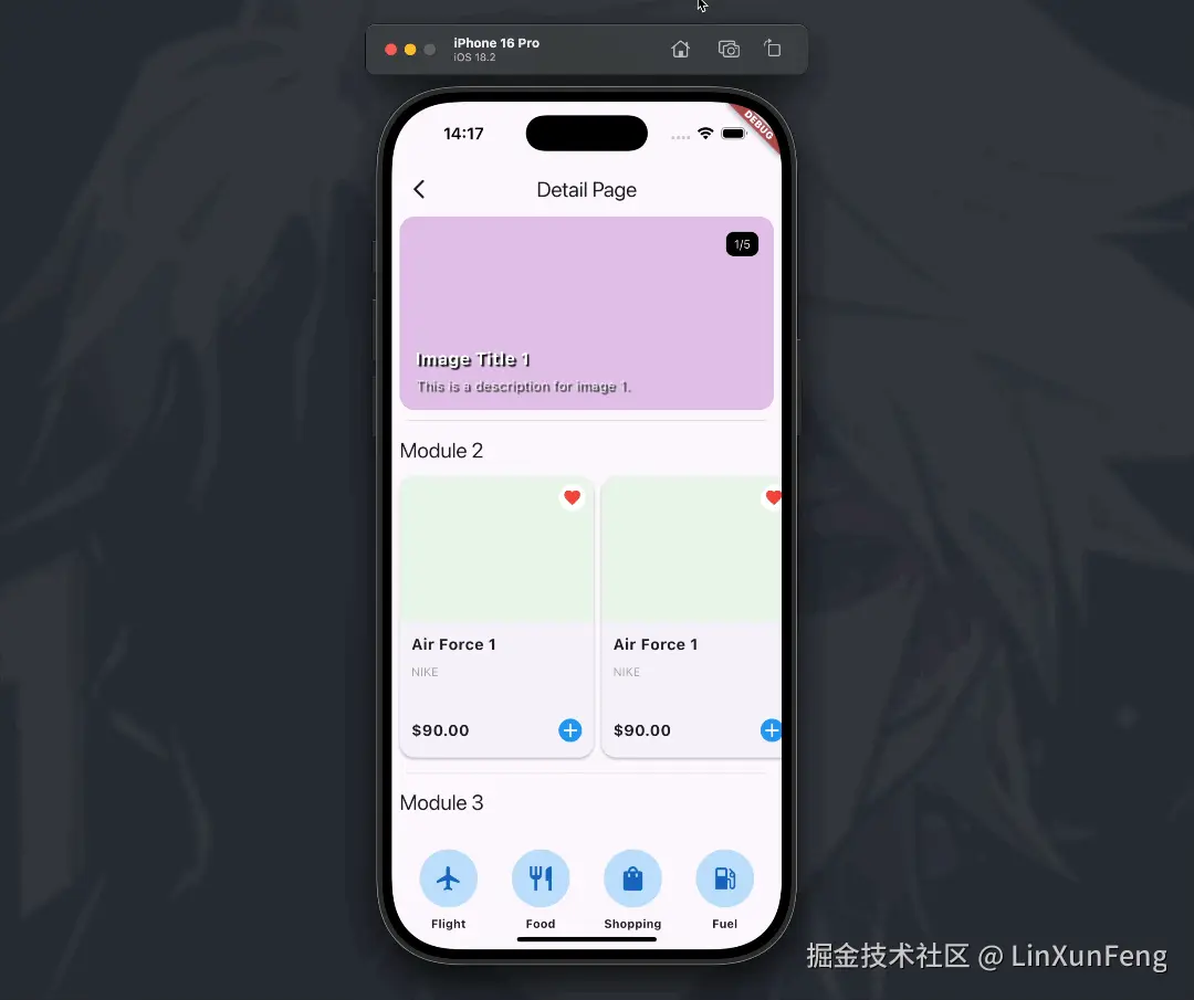 页面结构很简单,主体为 ListView,DetailNavBar 内部是使用 TabBar 来实现的,将其盖在 ListView 的上方。