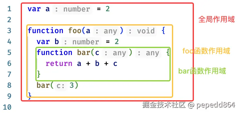 - 另外一种叫作动态作用域,仍有一些编程语言在使用(比如 Bash 脚本、Perl 中的一些模式等)。