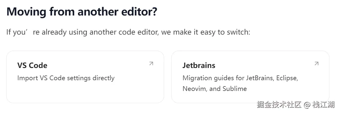 关于VSCode与Jetbrains了有提到,不过是说如何把vscode与jetrains如何迁移至cursor。
