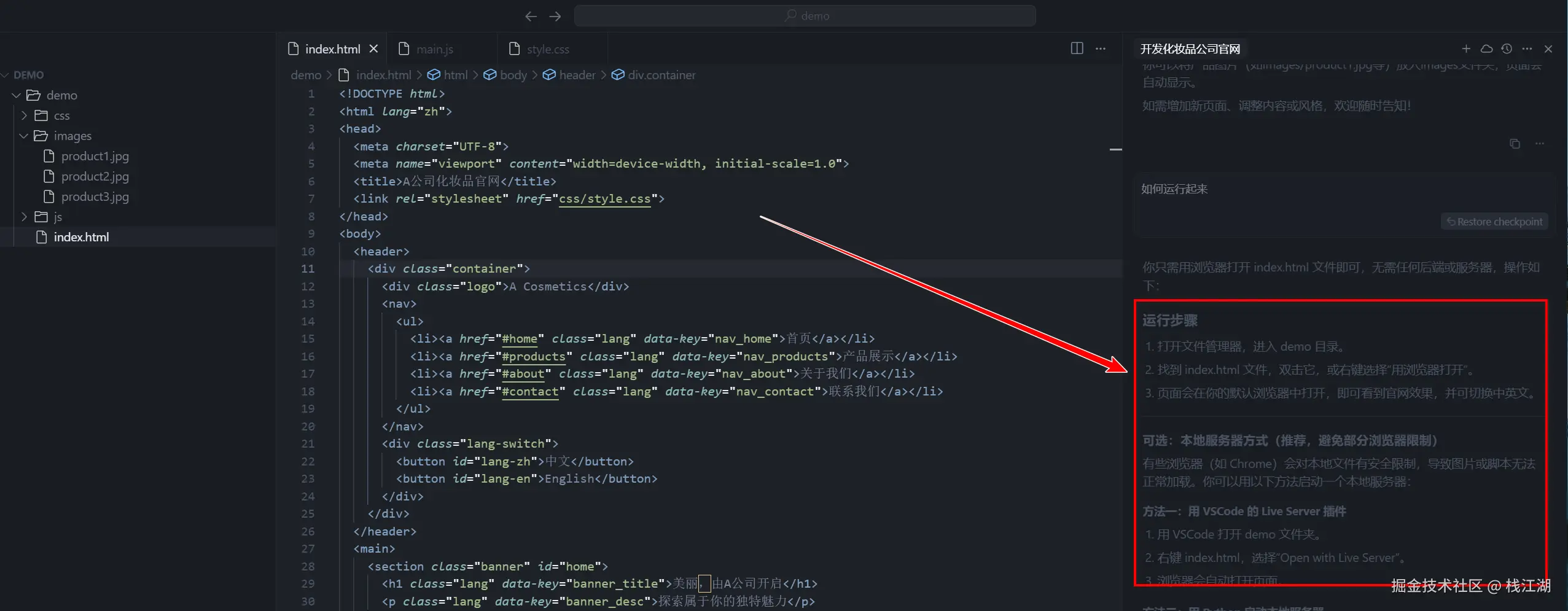 如果生成后的项目你不会运行也可以直接问Cursor,运行方案和步骤都会列出,你可以按照它的引导运行你的项目