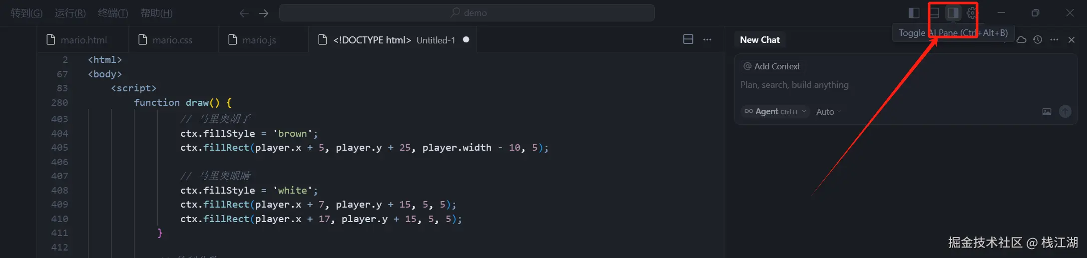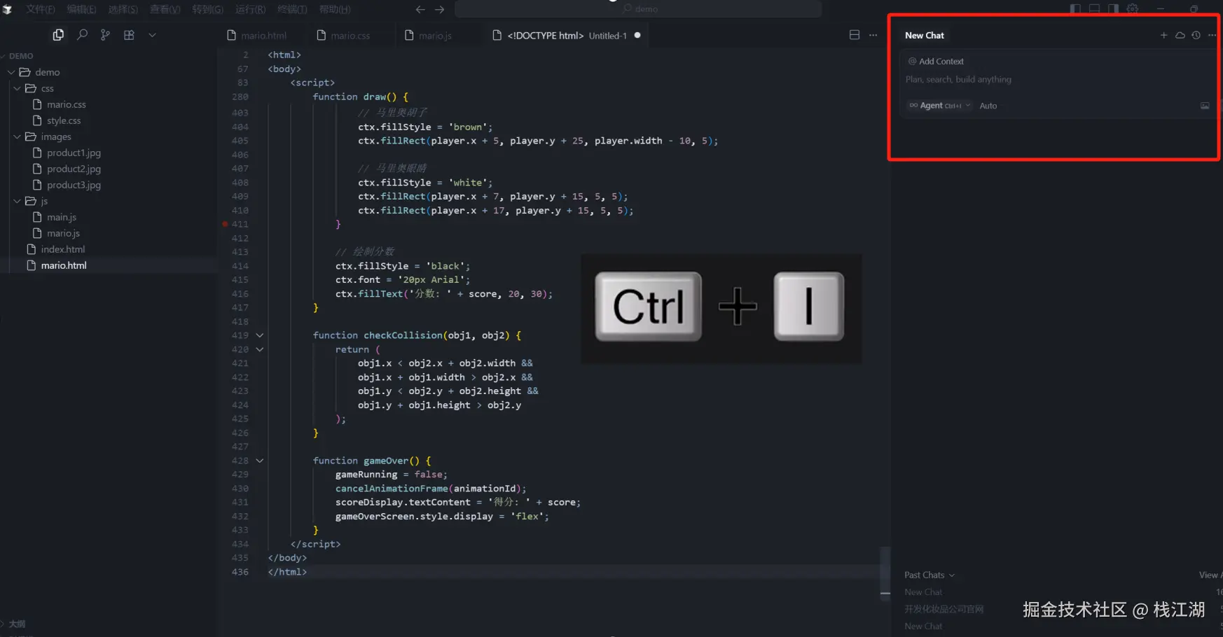- 按下Ctrl+K,就能以嵌入窗口的形式出现对话窗口