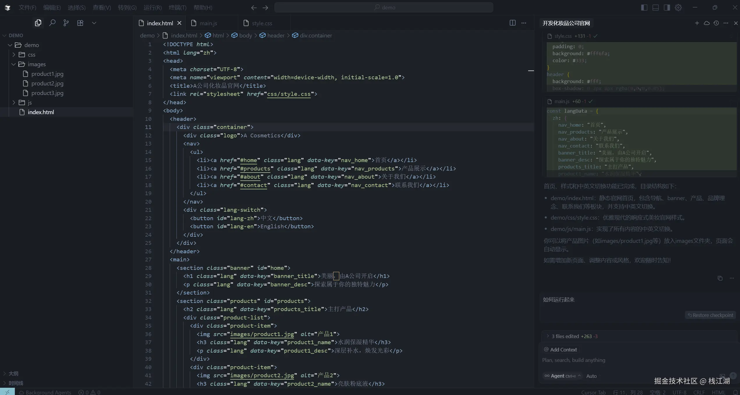 当然这只是一个网站的雏形,毕竟如果要一个后台开发搞这些配色、布局也得花不少时间,而Cursor只花了3~5分钟就生成好了。如果说这个网站就可以用于商用,肯定是不可能的,但这种开发方式对于后台开发人员来说无疑是更好的选择。并且随着AI的发展它的编码能力会越来越强,由于目前AI大模型基本走上了开源的模式,我们还可以针对性的对大模型进行微调,定制我们需要的AI大模型。