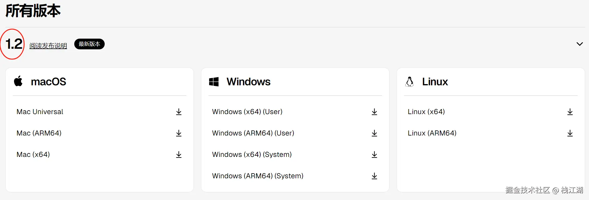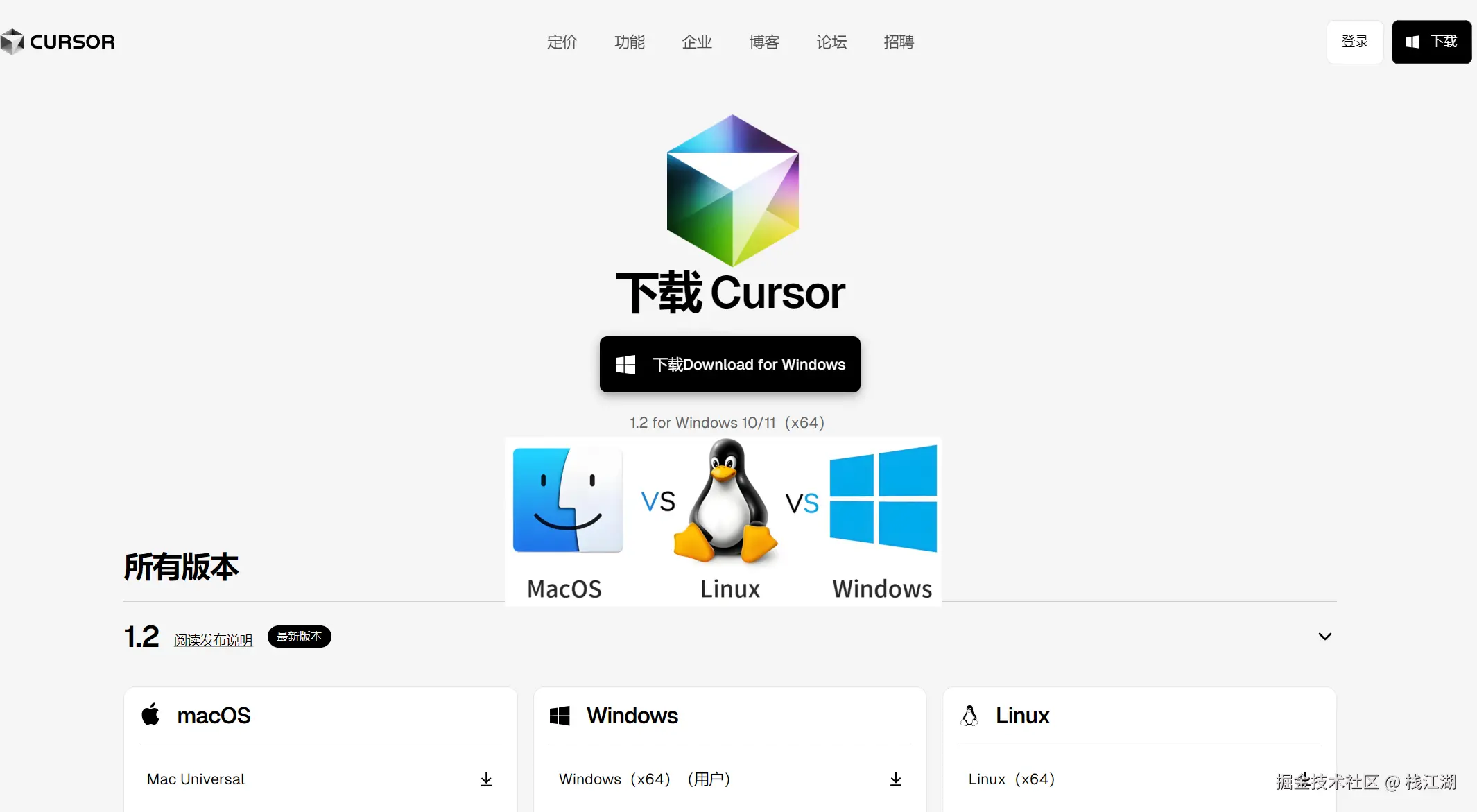 目前官方最新是Cursor v1.2版本,提供windows、Linux、MacOS操作系统安装包。
