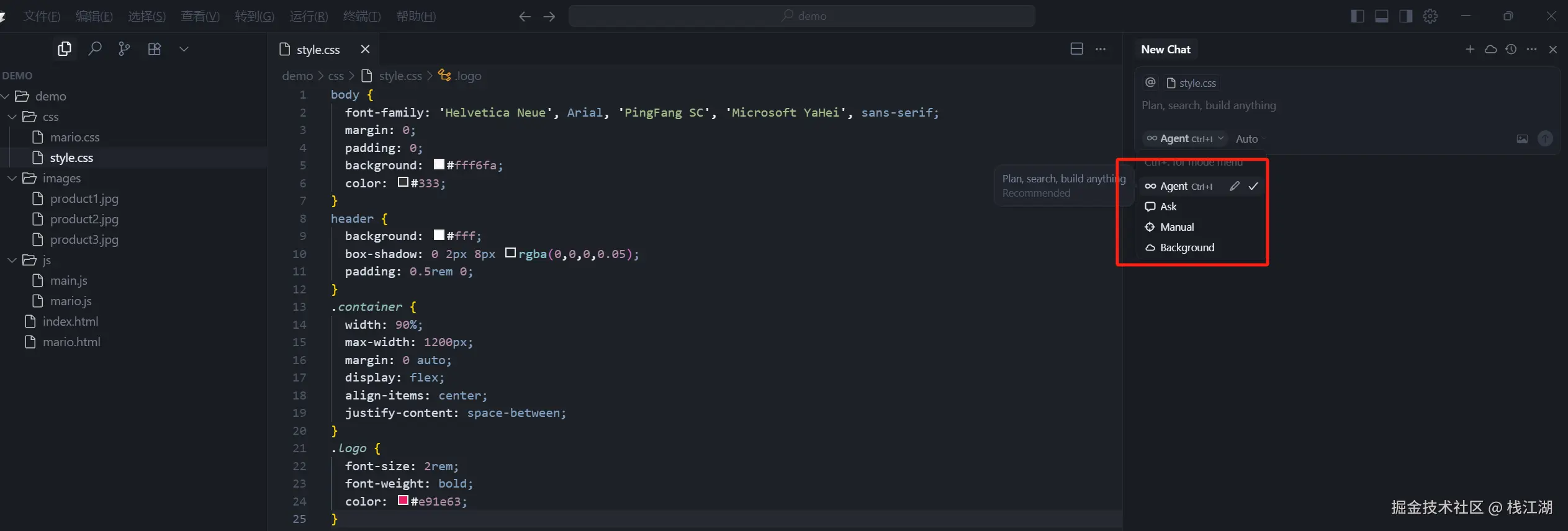 用于自主编码任务、终端命令和代码编辑的助手。Agent是Cursor的助手,可以独立完成复杂的编码任务,运行终端命令,编辑代码。也就是Agent可智能一些,权限更多一些,可以实际读写多个文件、修改项目结构。