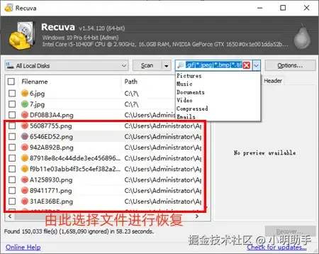 提示:扫描后可以通过右上方选择文件类型进行筛选哦。