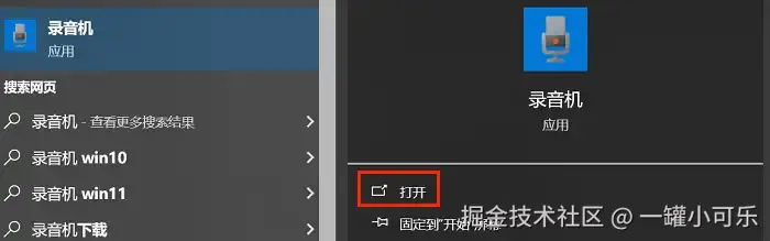 步骤1:点击电脑左下角 “开始” 按钮,搜索 “录音机” 并打开。