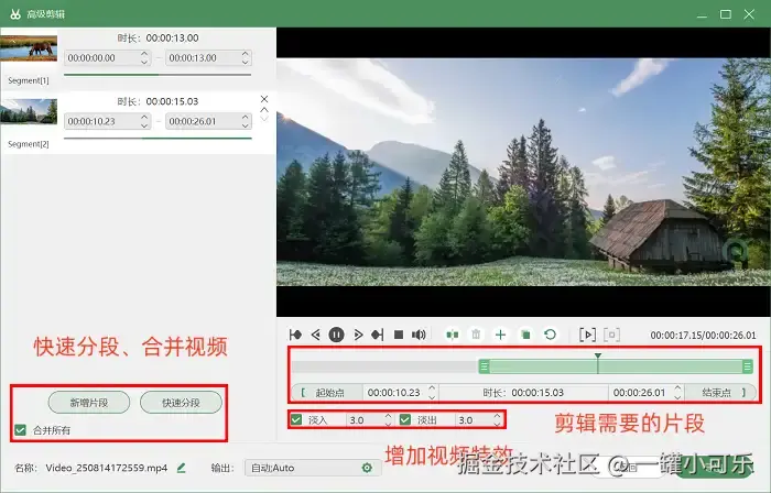 第3步:录制结束后,视频会自动保存到软件默认的文件夹中,同时在软件的 “历史录制” 板块里也能便捷地找到该视频。更值得一提的是,数据蛙录屏软件还配备了实用的后期处理功能,比如 “高级剪辑” 工具,能帮助你快速对视频进行分段、剪辑出所需的片段。