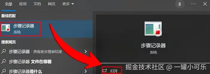 步骤1:在Win搜索栏里直接输入 “步骤记录器” ,然后打开它。