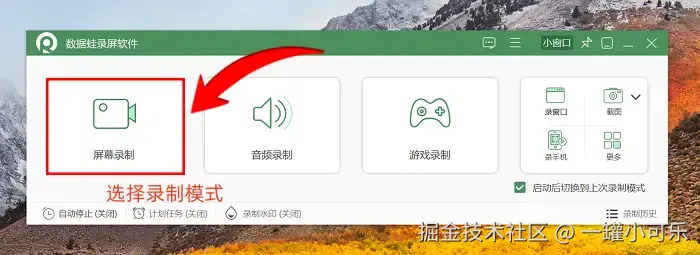第1步:启动数据 蛙录屏软件。打开软件后,界面会显示多种录制模式,你可以根据自身实际的录制需求进行选择,这里以 “屏幕录制” 模式为例展开说明。