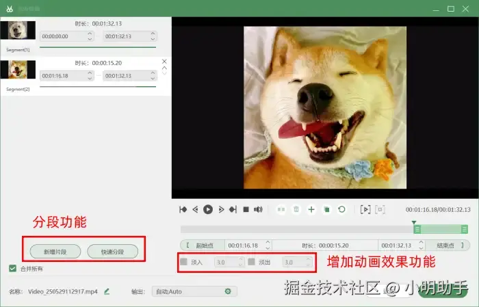 步骤③:录制视频完成后,我们可以使用软件自带的“高级剪辑”功能对视频进行各种后期制作,诸如,新增片段、快速分段、增加动画效果等。