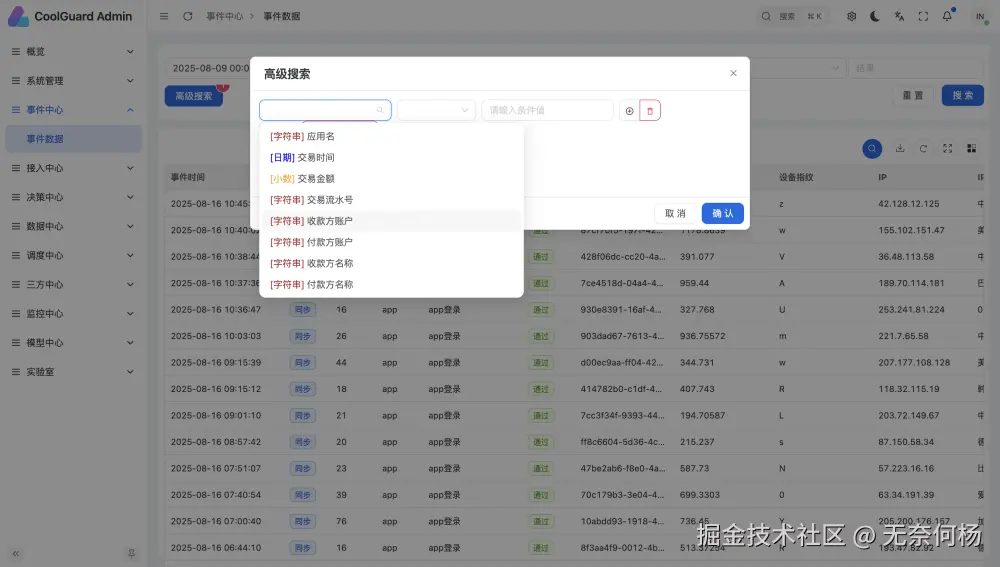 在事件中心,展示所有事件数据,搜索条件除了固定的一些外,还可以是自定义的任意字段的“AND”组合。