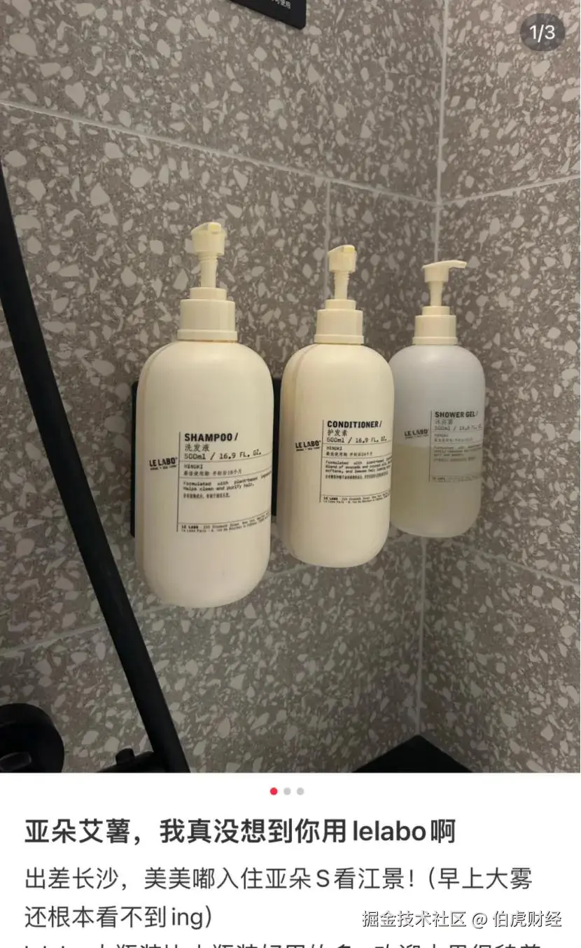 比如最近多位网友在小红书分享的惊喜体验:亚朵S洗护香氛换le labo了!此前引入的英国奢华水疗护肤品牌ESPA和高定香氛品牌Jo Loves也曾让消费者感叹。