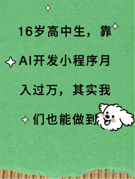 今年上半年被一个16岁高中生靠AI编程月入过万的新闻刷屏。16岁的冼星朗用八个月时间,从零基础编程小白变身月入过万的开发者,还获邀参加苹果全球开发者大会。这不是天才专属剧本,而是AI时代每个人都能复制的可能。