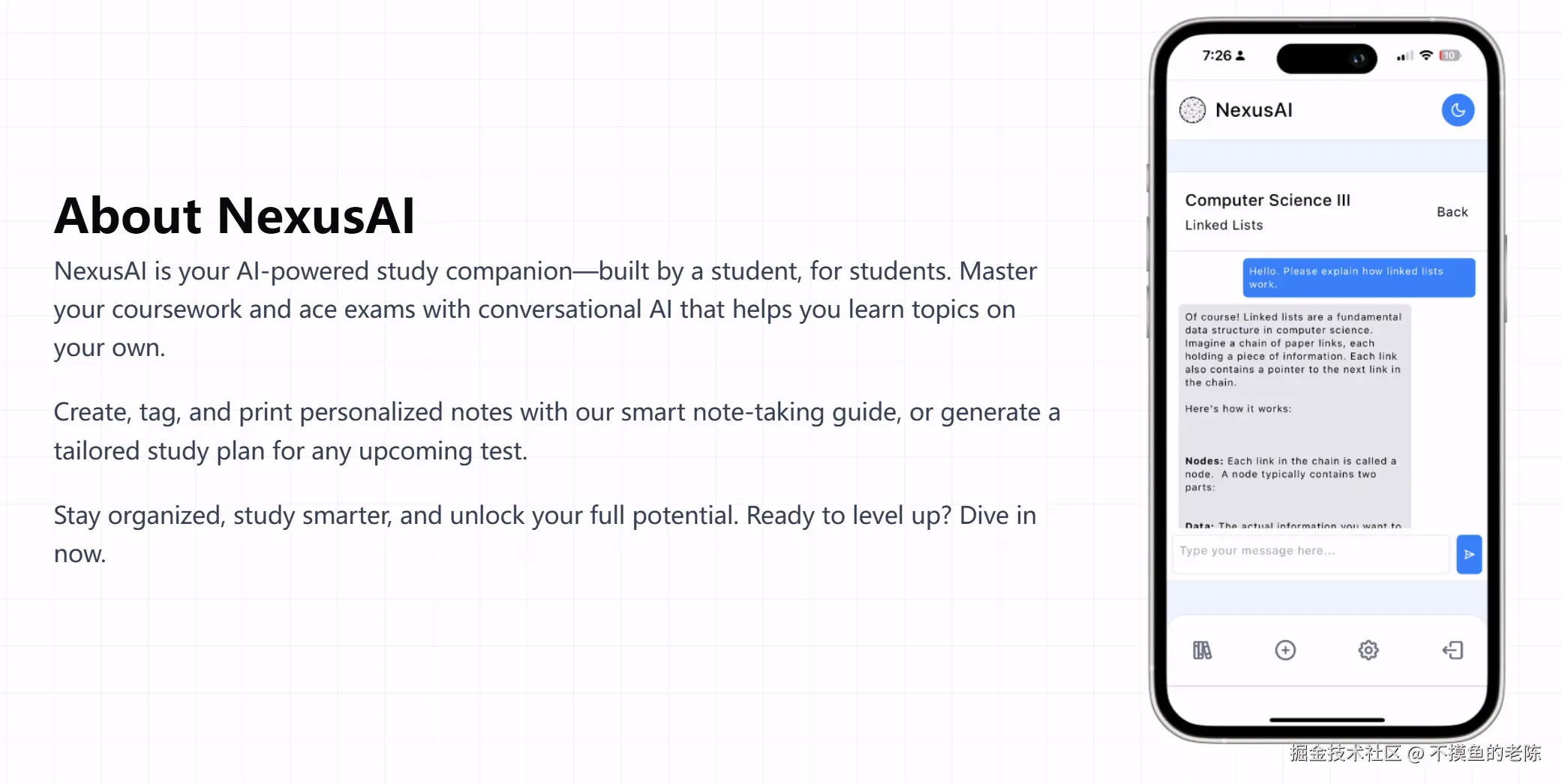 Nexus AI是一款学生生产力和学习助手应用,利用AI技术进行笔记整理、学习指南生成和专注提升。