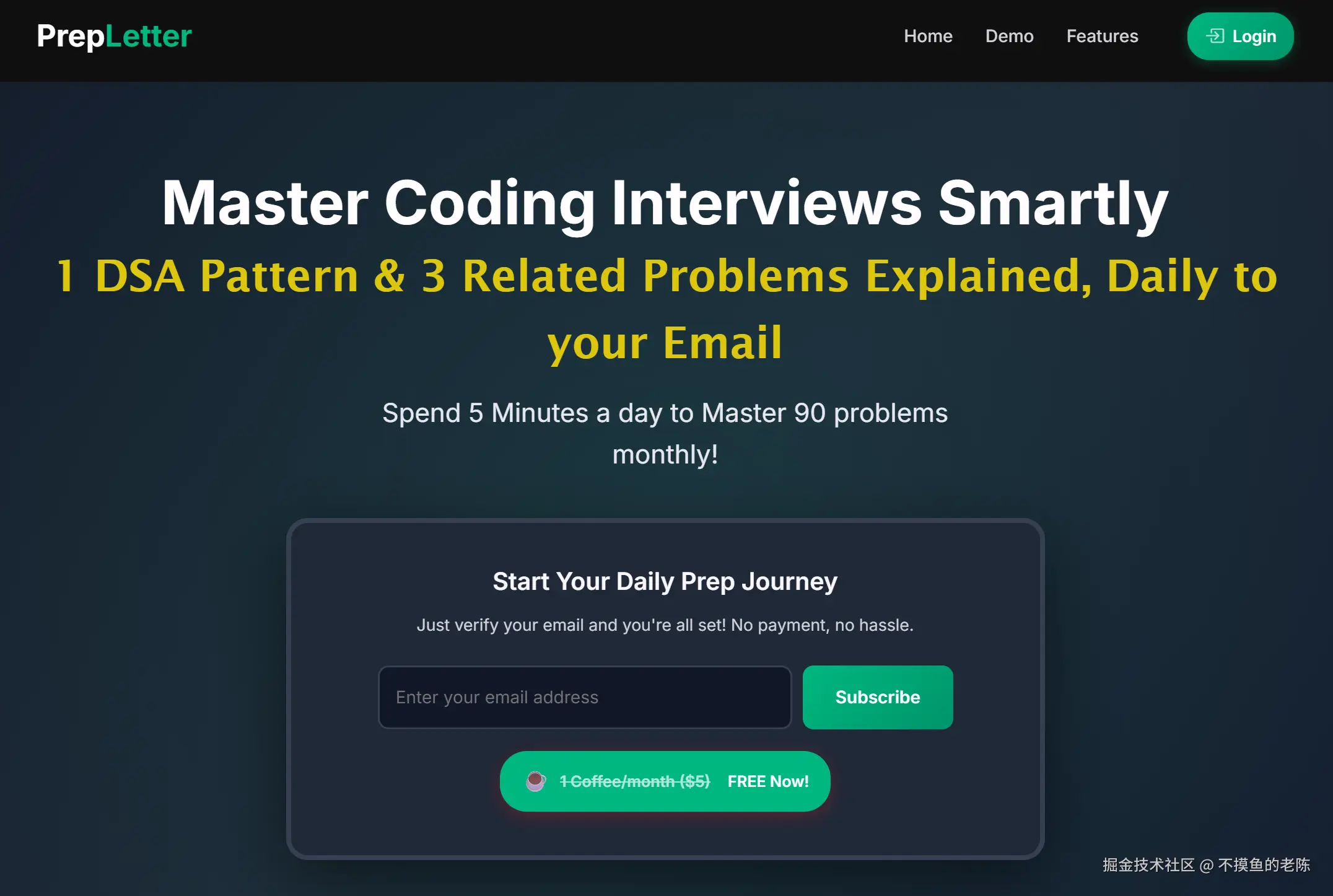 PrepLetter是一款DSA学习邮件,每日提供一个算法模式和三个问题解析,并新增每周测验功能,帮助用户更好地跟踪学习进度。