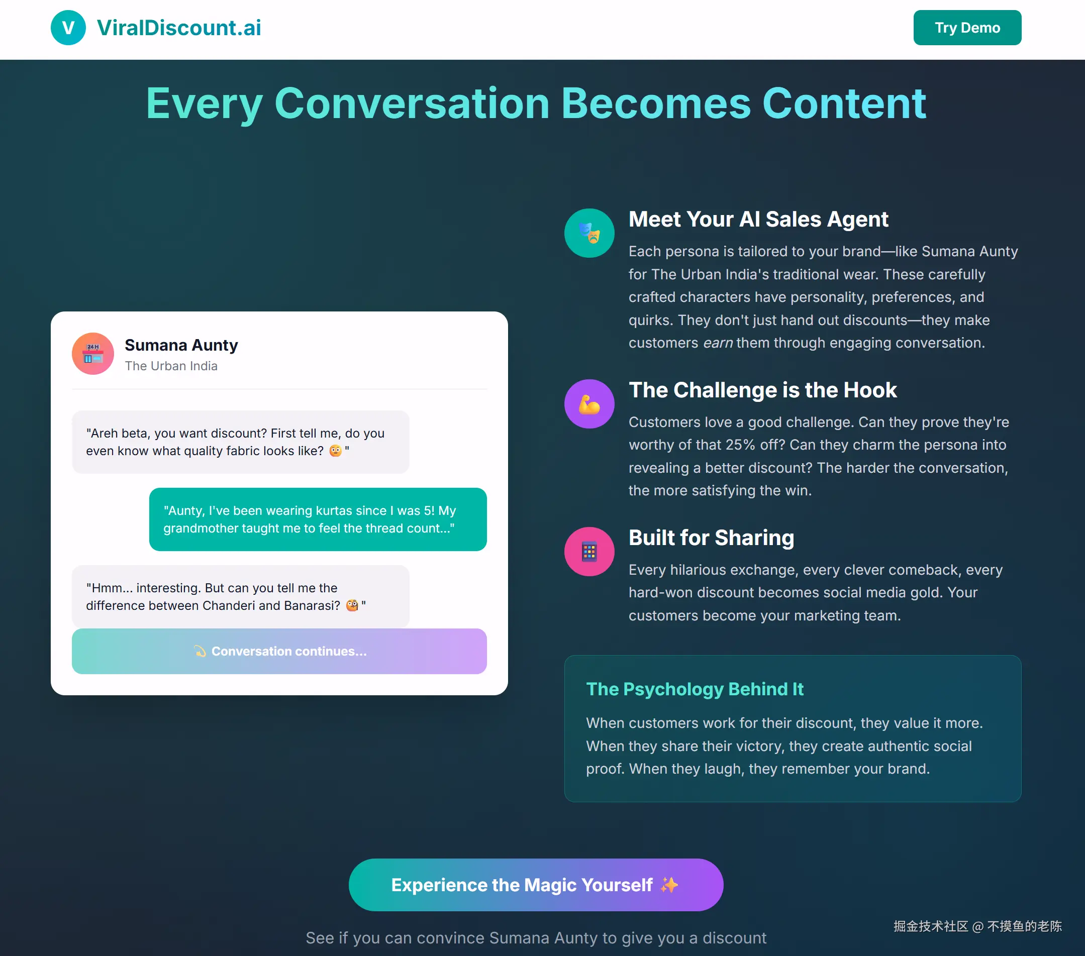 Mentage是一款AI应用,允许用户与AI对话以获取折扣,旨在促进公开构建和分享。