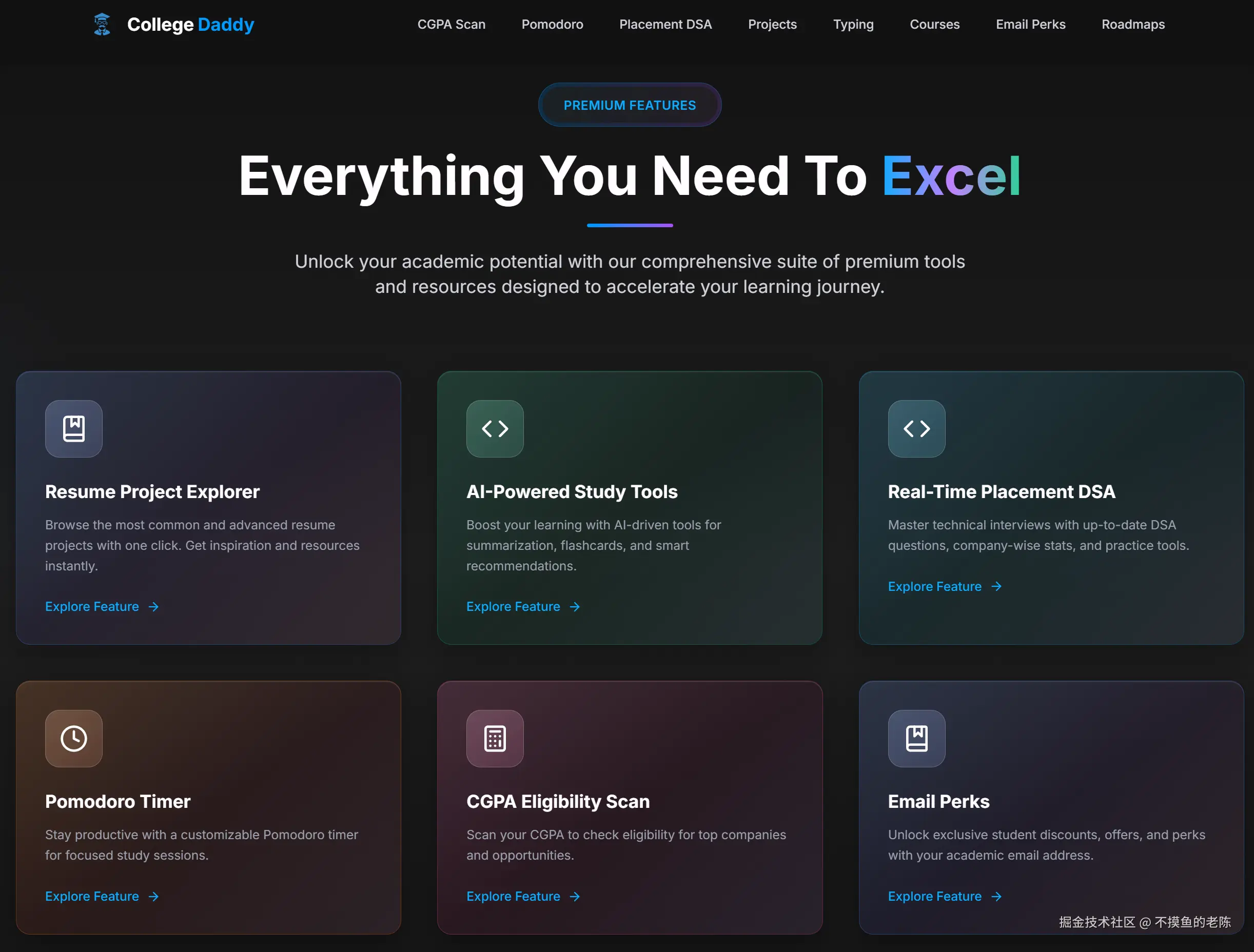 CollegeDaddy是一款帮助学生查找邮箱福利和免费课程资源的工具,提供GitHub Student Pack、JetBrains、Canva Pro等福利,并链接MIT、哈佛等名校的高质量免费CS课程。