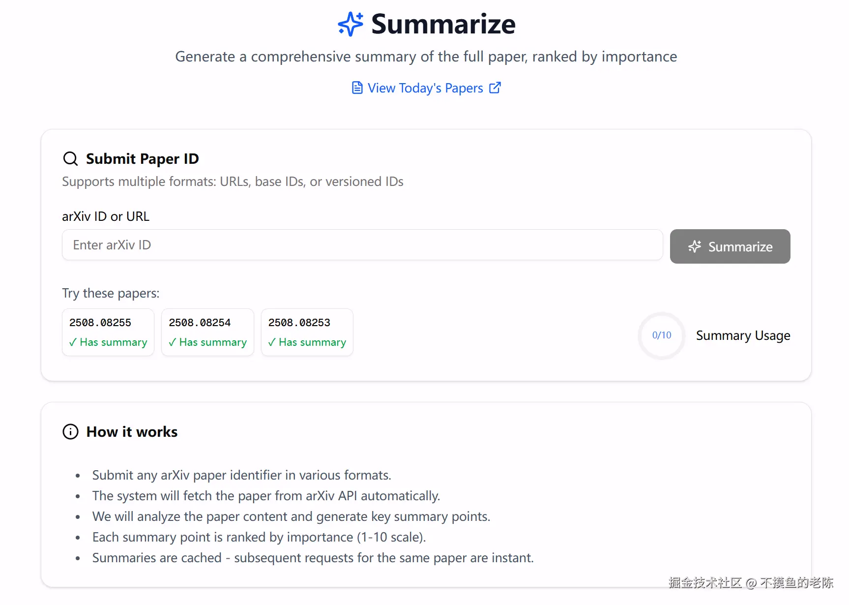 absmin是一个论文摘要工具网站,根据用户设定的关键词,每天发送相关的arXiv论文摘要,帮助用户高效获取信息。