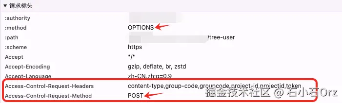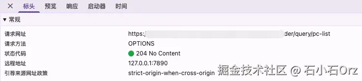 你可能会有疑问,我的代码里明明没有写 OPTIONS 请求,浏览器为什么会有这样一个请求记录。其实,这是浏览器内置的一种安全机制——预检请求(Preflight Request) 。