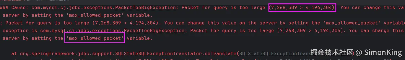 所以呢,当一次插入的数据达到一定的数据就会出现异常。