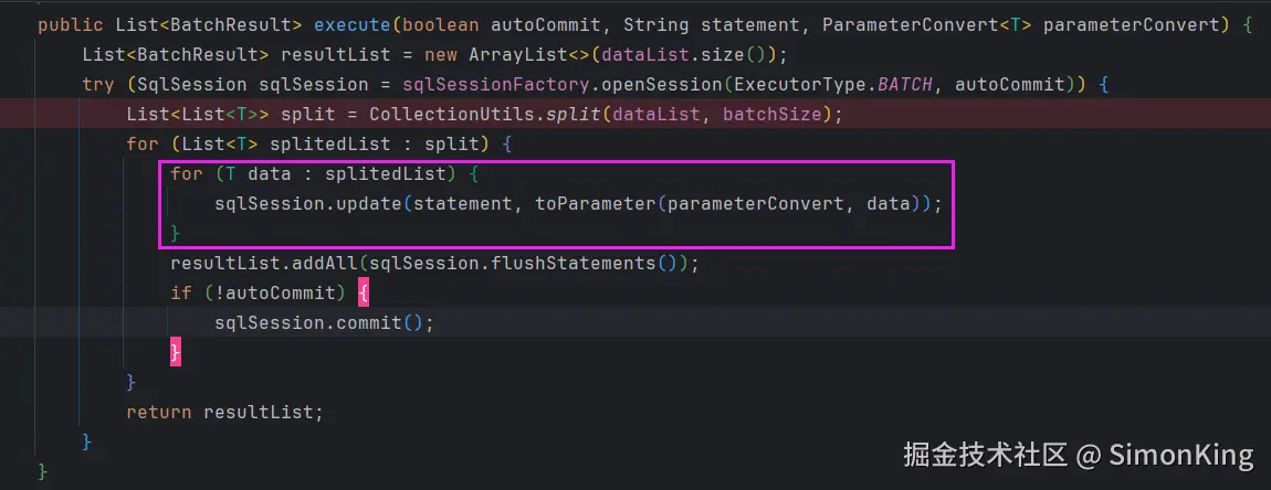 MybatisBatch<UserInfo> mybatisBatch = new MybatisBatch<>(sqlSessionTemplate.getSqlSessionFactory(), userInfos);