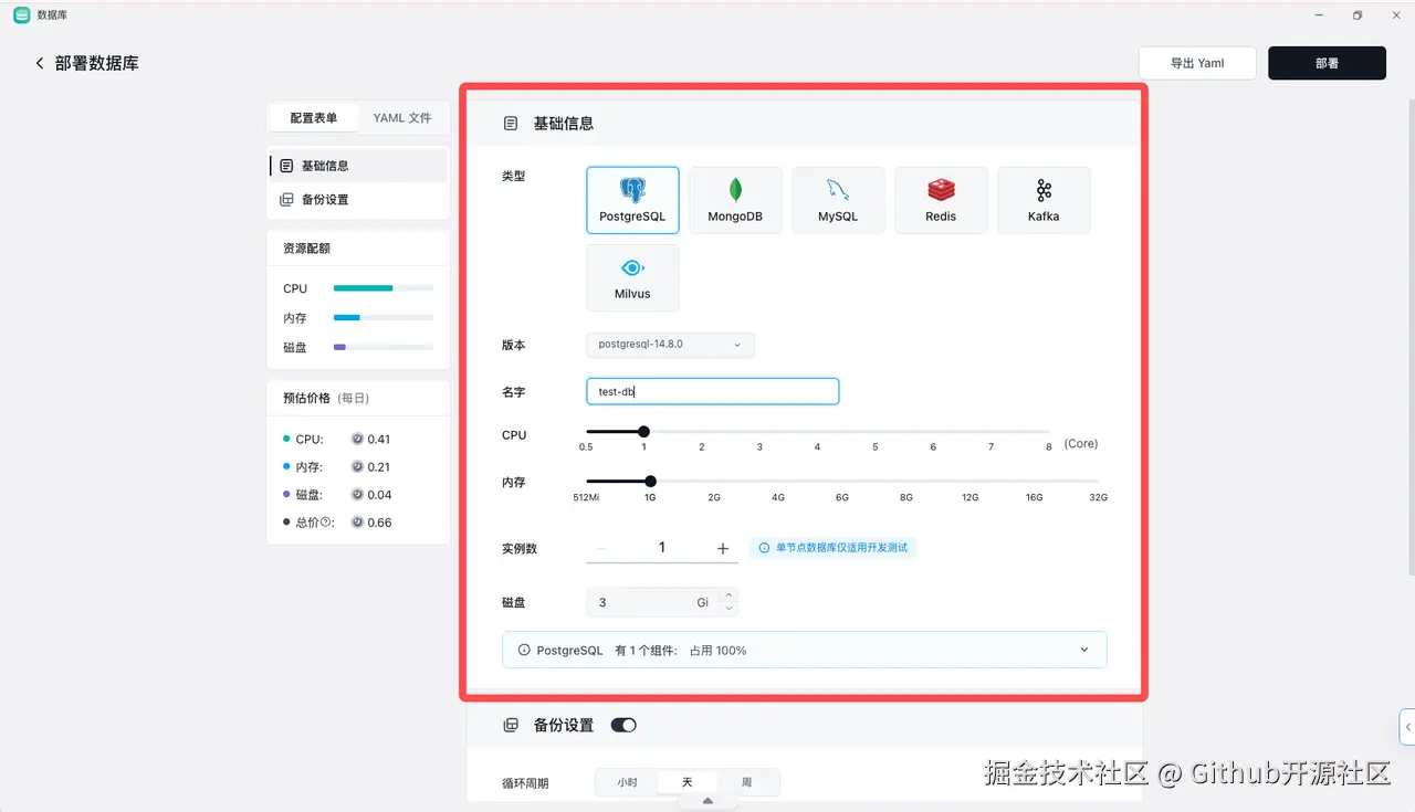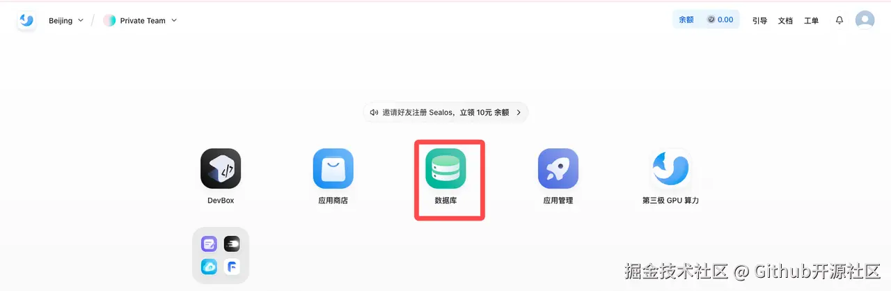 咱们得先有个数据库让 DbGate 来管理,对吧?在 Sealos 上,这事儿简单到“发指”: