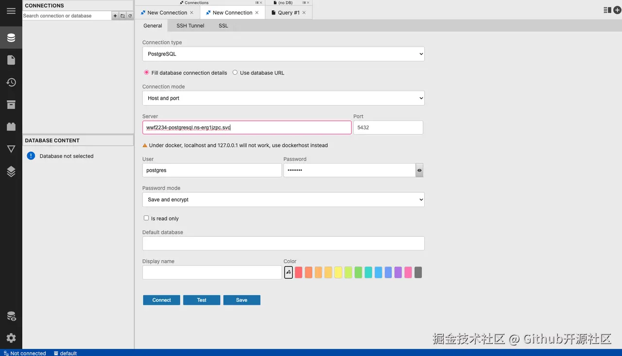 PostgreSQL)。 - 然后,把我们第一步里复制出来的那些“通关密语”(内网地址、用户名、密码等),像做填空题一样,一个个粘贴进去。