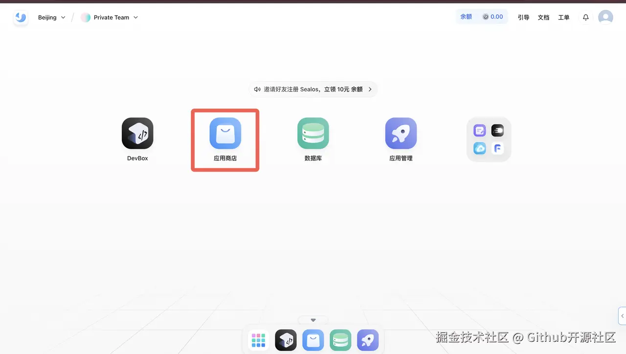 - 打开 Sealos 桌面上的 「应用商店」。