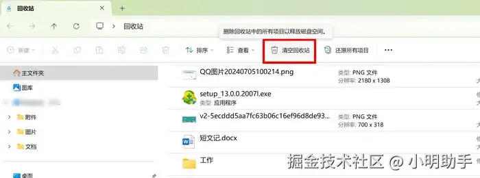 步骤2: 回收站的上方有个【清空回收站】,点击即可一键清空。