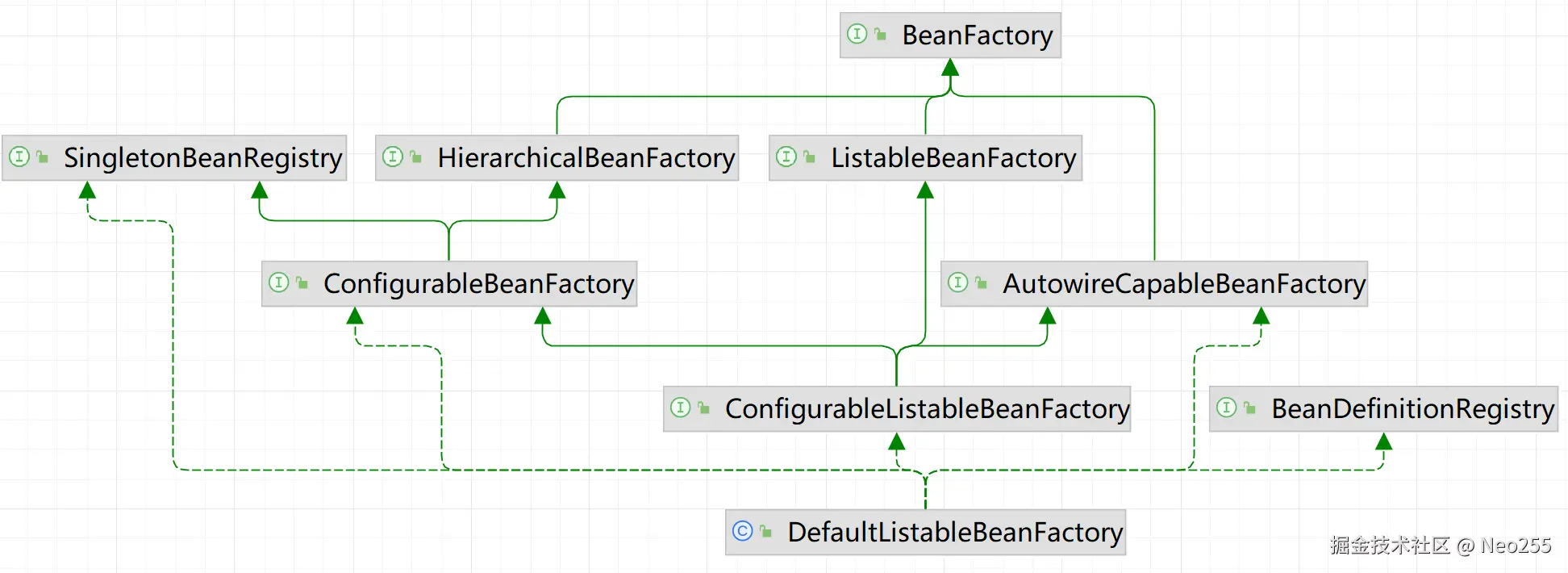 回顾前面的代码,当前执行中代码的BeanFactory的类型是DefaultListableBeanFactory,其关系类图如下: