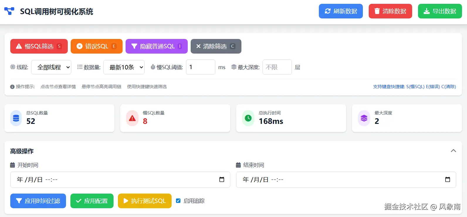 - 性能监控:记录SQL执行时间,自动标识慢SQL