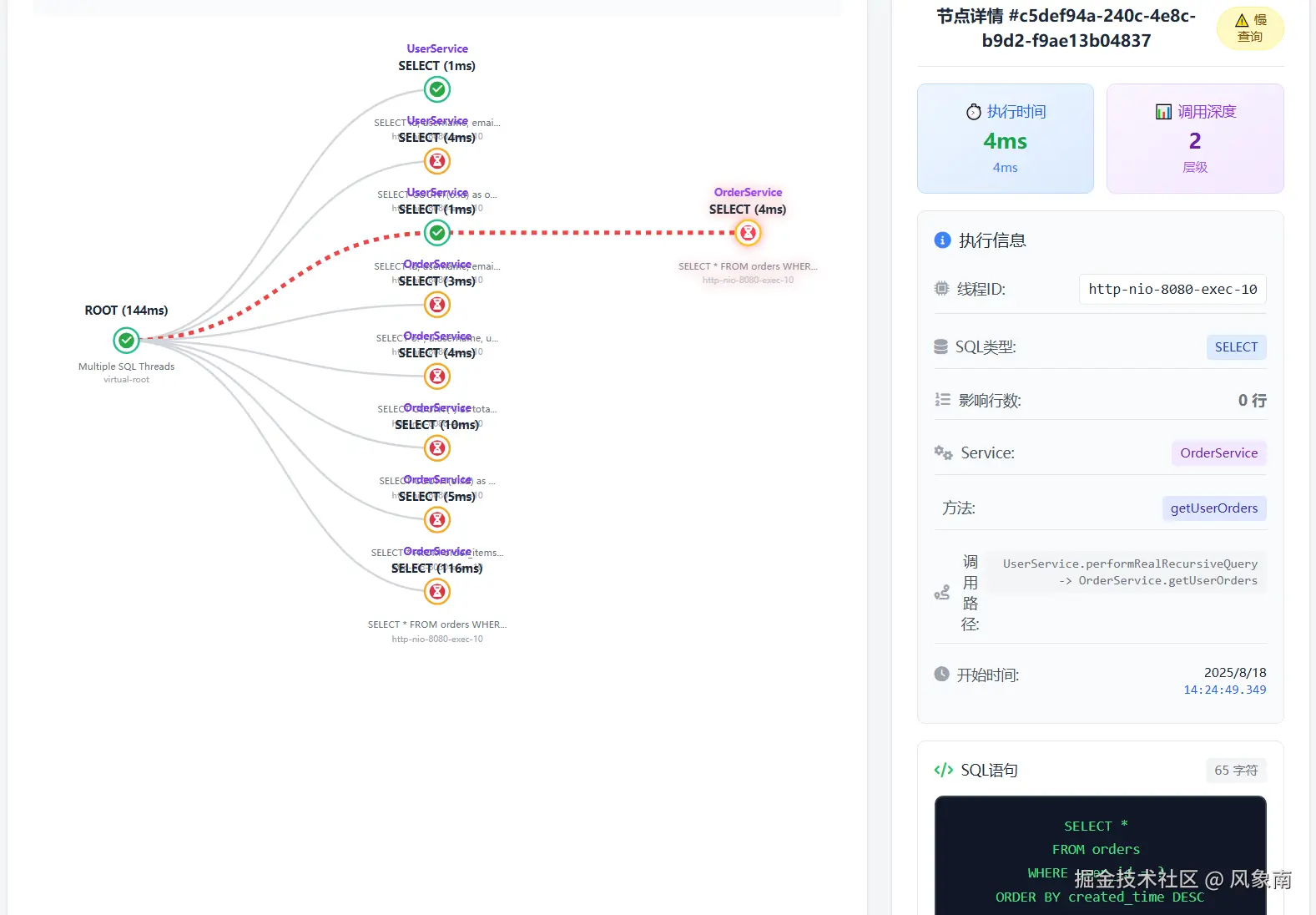 在复杂的业务系统中,一个接口往往会执行多条SQL,如何直观地看到这些SQL的调用关系和执行情况?本文将使用SpringBoot + MyBatis拦截器构建一个SQL调用树可视化系统。