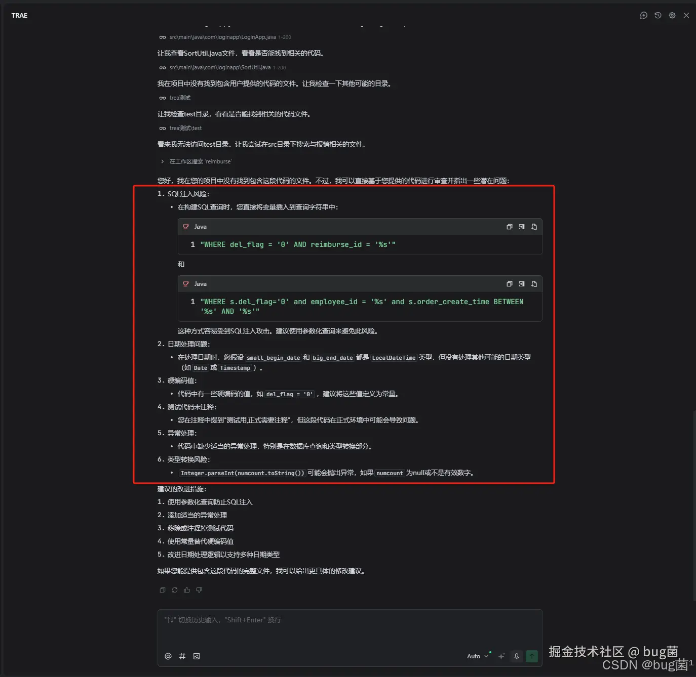 最让我兴奋的是Trae的智能代码审查功能!在提交代码前,你可以让AI先帮你"过一遍":
